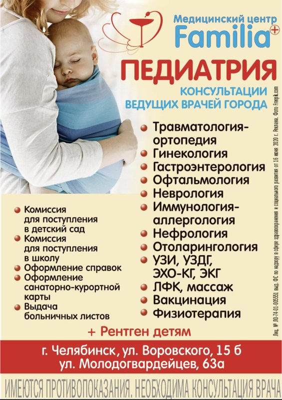 В медицинском центре Familia заботятся о самых маленьких пациентах. Наши врачи специализируются на лечении болезней у деток, а значит вы можете быть уверены, что ваш ребенок получит особенное внимание. Кроме первичного осмотра у педиатра, ведется запись и к другим работающим здесь врачам.